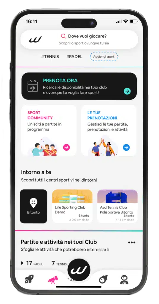 Prenota il tuo campo tramite l’App WanSport, sia per iPhone che device Android.